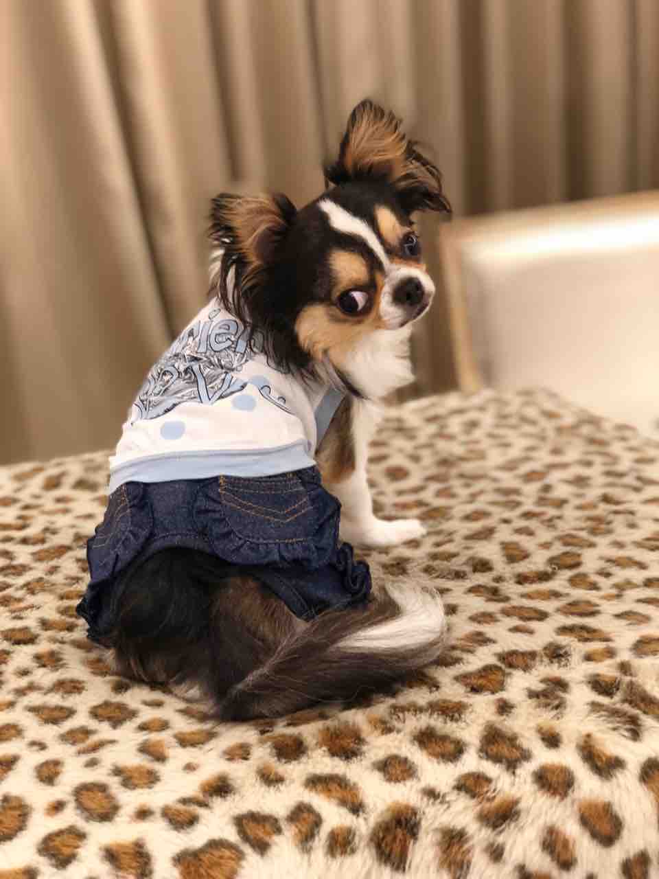 背丈(首の付け根から尻尾の付け根まで)、胴回り、ウエスト周り、体重、犬種をお知らせください。