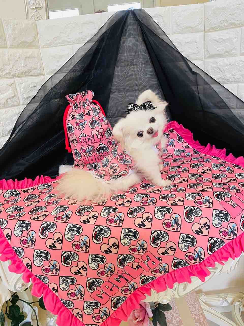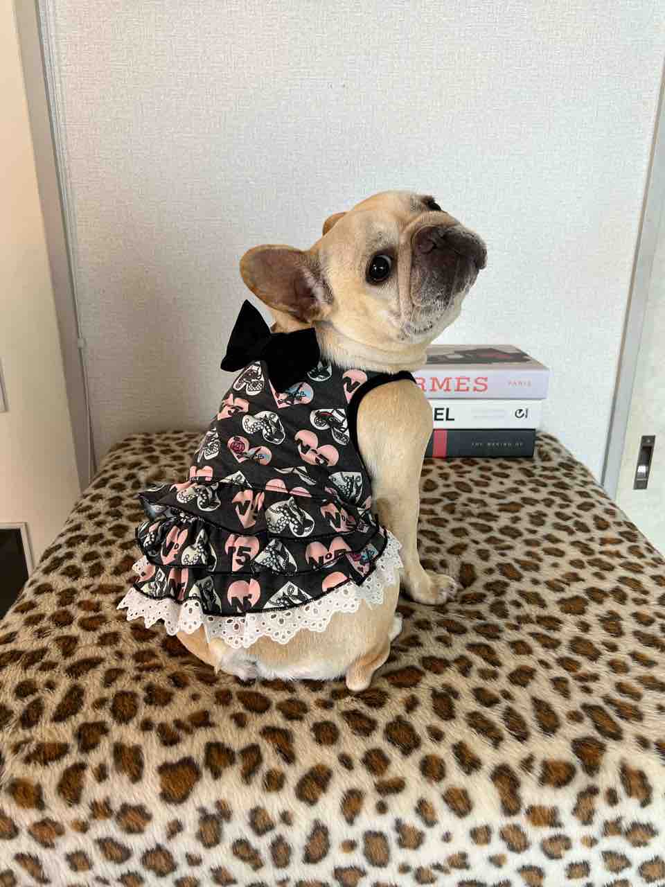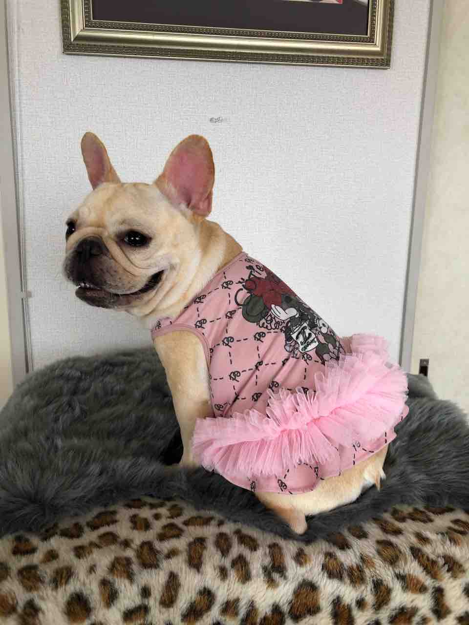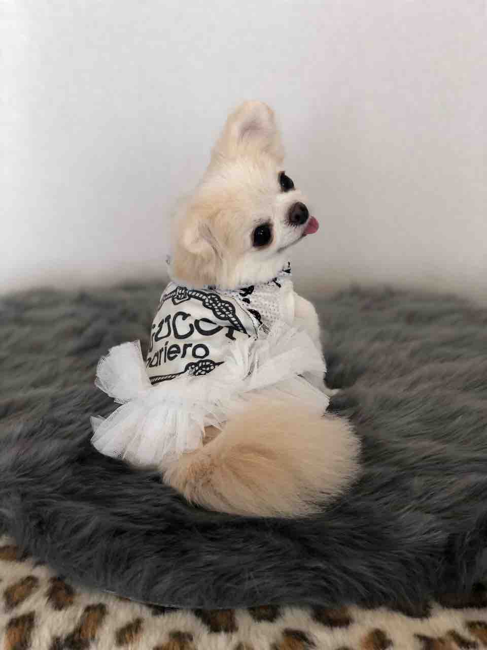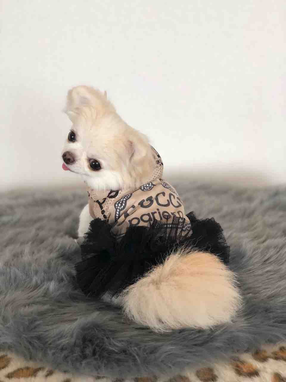 ワンちゃんのお洋服はドレス👗とても可愛いティアードスカートに綿レースが裾にチラ見えしてる爽やかなサンドレスです