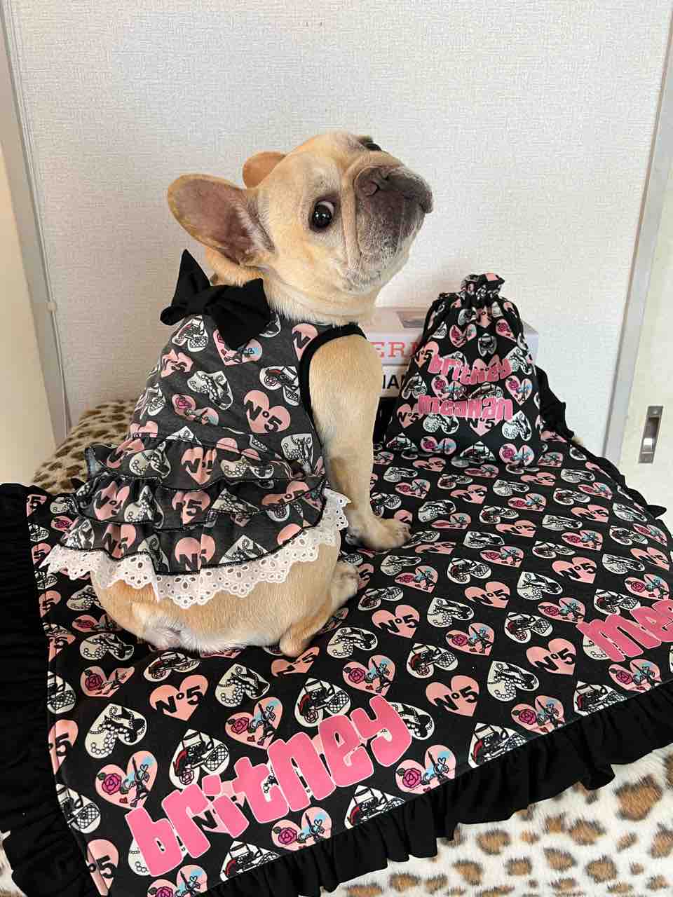 どこにもない、お名前が前見頃にプリントされている可愛いお洋服と、前回めちゃくちゃ人気だったカフェマットと巾着バッグのセットをご紹介します